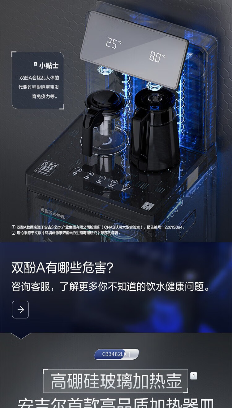 安吉尔饮水机茶吧机家用办公立式下置式智能多功能饮水器温热款